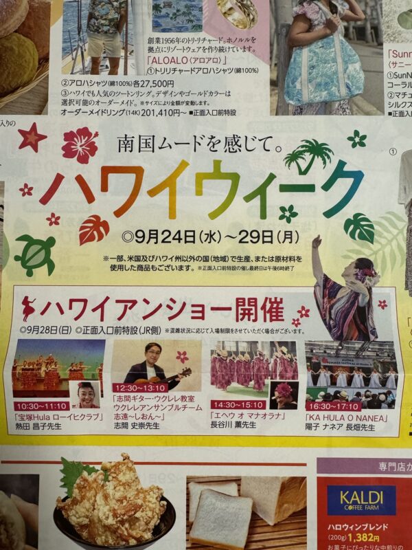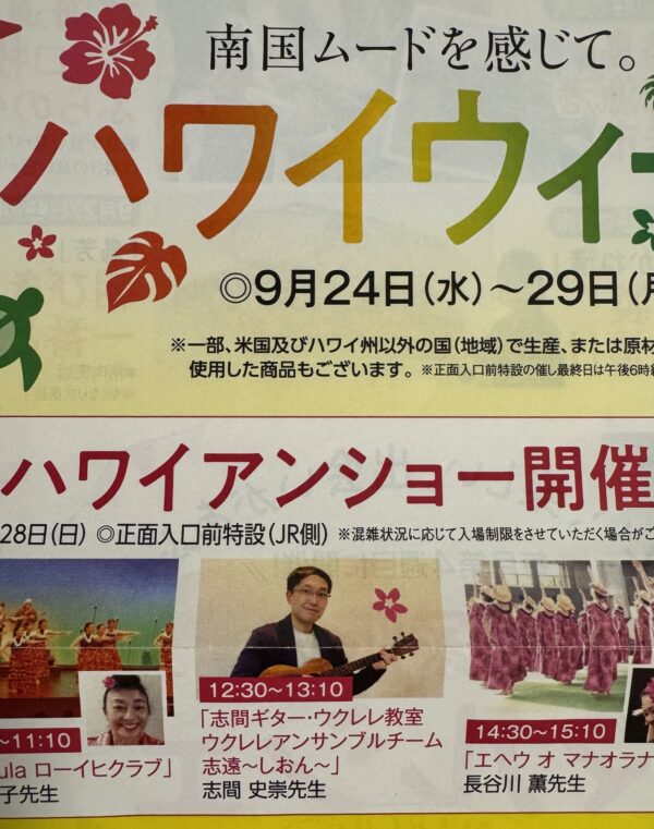 この度、宝塚阪急でのイベントにお誘い頂き、志間ギター・ウクレレ教室から『ウクレレアンサンブルチーム志遠〜しおん〜』が参加しました!